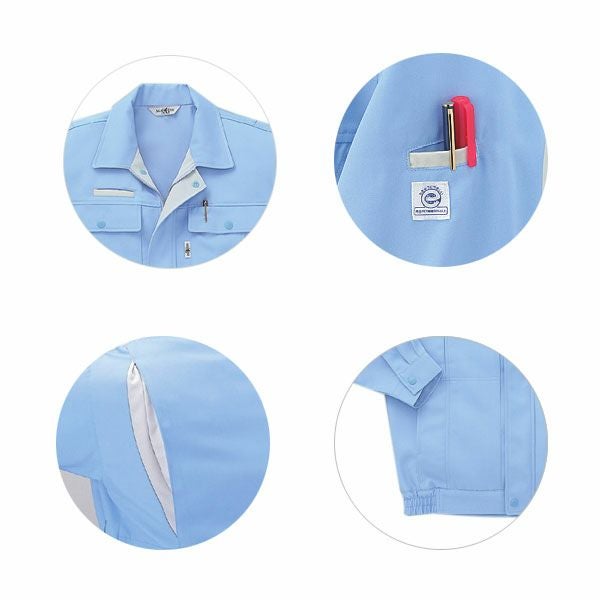 1、グリーン購入法対応商品 2、男女兼用 3、低発塵 4、帯電防止素材 5、形態安定 6、左胸ペン差し付 7、左袖ペン差し付 8、背中ノーフォーク 9、TELEキャッチャー 10、ファスナ/フロント:プラスチック 11、ボタン/プラスチック 12、氏名片布付 13、エコマーク付(左袖) |
