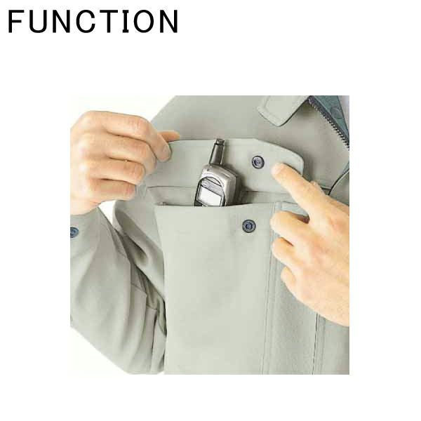 | 特徴 | 1、帯電防止 2、裏綿素材 3、ストレッチ 4、撥水 5、速乾性 6、形態安定 7、雨や汚れた水をはじく撥水加工 8、樹脂ファスナー 9、樹脂ボタン 10、右胸、携帯電話収納ポケット付 |