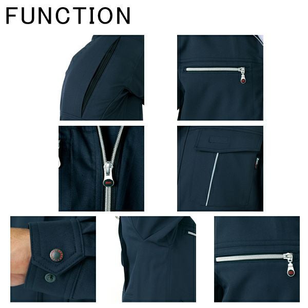 | 特徴 | 1、XEカット 2、帯電防止 3、スムーズアップ 4、年間対応 5、裏綿素材 6、樹脂ファスナー 7、金属ボタン 8、特殊カッティングで腕の上げ下げがスムーズ。XEカット。 9、シリコンスライダー引き手 10、激しい働きにもスムーズに対応する、プリーツロン 11、胸スリット内反射材 12、袖口ボタン 13、メッキファスナー付胸ポケット 14、胸オリジナルシリコン引き手 |