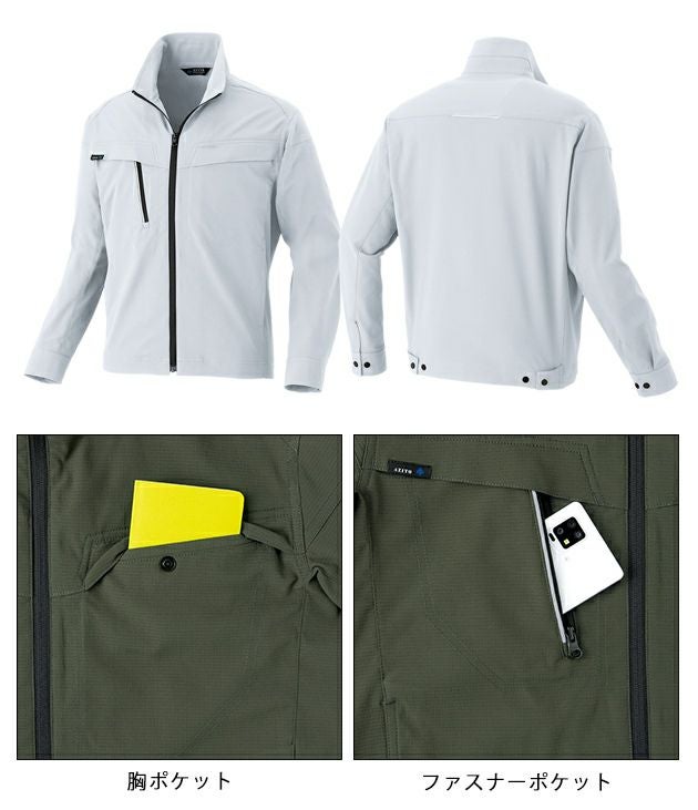 | 【特徴】 | 体になじむ快適新素材、超軽量スーパーストレッチ JIS T8118適合 ◆生地を二重織構造にすることで強度と保温性を両立。 緯糸に伸縮性に優れた縮糸を配列し、20%を超える抜群のストレッチ性能を実現した超軽量仕様素材を採用。 ◆ファスナーポケット ファスナー付の大型ポケットを装備、反射パイピングで安全性に配慮。 ◆胸ポケット 収納物を出し入れしやすい袖の取り出しやすい位置に大型ポケットを装備。 ◆袖ペン差し 袖の取り出しやすい位置にあり、よく使うペン等の収納に便利。 ◆胸ペン差し 左胸の取り出しやすい位置にペン差しを装備。 ◆背中反射パイピング 背中に反射パイピングを装備安全性に配慮。 |
