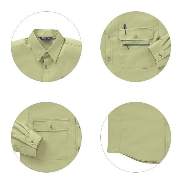 1、男女兼用 2、トリカット 3、帯電防止素材 4、ファスナー/ポケット:金属 5、ボタン/プラスチック 6、トリカット脇のツッパリを解消 7、左袖ペン差し付 8、左胸ファスナー付Wポケット 9、左胸ペン差し付 |