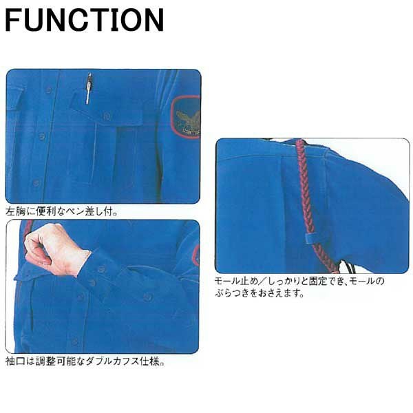 | 特徴 | 1、左胸に便利なペン差し付。 2、袖口は調整可能なダブルカフス仕様。 3、モール止め/しっかりと固定でき、モールのぶらつきをおさえます。 4、帯電防止 5、イージーケア 6、高耐光加工 7、樹脂ボタン |