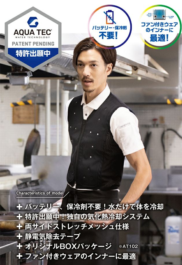 | 【特徴】 | バッテリー不要、水の力だけで体を冷却。独自に開発された気化熱システムを採用。 ファン付きウェアのインナーとしても最適なアクアウォーターベスト。 ◆水の力だけで冷却 ◆水だけで長時間冷却が持続する気化熱冷却システム ◆中芯抗菌加工 ◆バッテリー不要 ◆接触冷感 ◆サイドストレッチ素材 ◆静電気除去テープ 使用方法 ・背中の注水口から水を入れて注水校を閉じます。 ※注水量最大400ml ・ベスト背面全体に水が行き渡るように手で水を拡散させます。 ・肩の部分へ水を下から上に押し上げるように浸透させてください。 ・全面も同様に全体に拡散させてください。 ・排水キャップをあけてベストを丸め、余分な水を絞り出してください。 ・排水キャップを閉めてください。 |