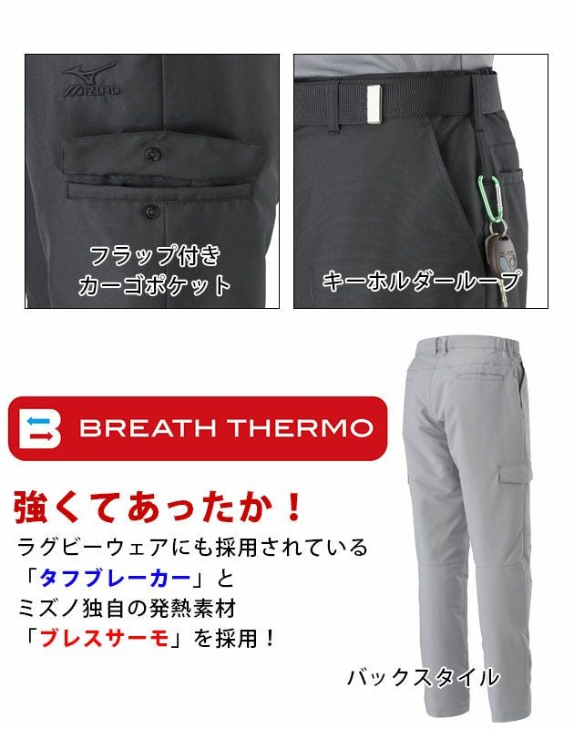 | 特徴 | ラグビーウェアにも採用された「タフブレーカー」! さらに大人気ミズノ「ブレスサーモ」採用! ◆タフブレーカーとは? ラグビーウェアにも採用されている強い生地! 作業服にもその技術を応用しました! ◆ブレスサーモとは? 汗などの水分を熱に変える! あったか素材として大人気! ◆動きやすさを科学した「ダイナモーションフィット」! スポーツブランドだからこそできた身体の動きの研究により動きやすいシルエットを実現! ◆再帰反射プリント(背中) ◆左袖ペン差し |