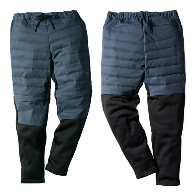 保温効果の高い中綿+ニット素材、ストレッチ性にも優れた新感覚防寒アクティブパンツ。