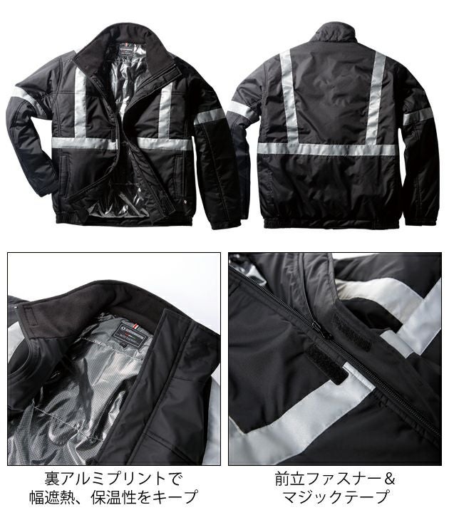| 特徴 | 耐水圧5,000mmの防水生地採用、撥水性・防風性にも優れた防寒ジャンパー。 裏地にはアルミプリント加工を採用し、保温性をキープ。 4cm幅の反射テープを前後に施し、視認性をアップ。 ・裏アルミプリントで幅遮熱、保温性をキープ ・前立ファスナー&マジックテープ ・左袖ペン差し ・左内ポケット(バッテリー入れ) ・左ポケットワンポイント付 ・袖口マジックテープ |
