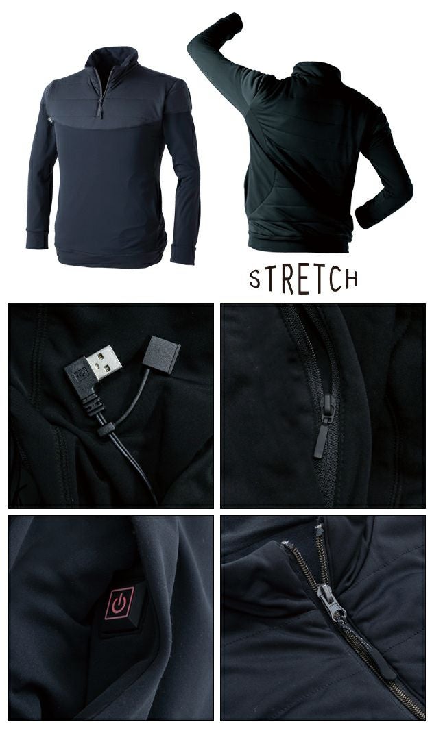 | 特徴 | 低温火傷防止機能が追加されリニューアル。単体でもレイヤリングでも使えるヘビロテウェア。 秋から冬は単体でも寒さ対策可能。真冬は上にアウターを着れば優れた保温性を発揮。 サイズ選びはピッタリ目を選ぶことで、暖まった空気が逃げにくく保温性が高まる。 見た目は薄い印象だが、中綿入りに加え裏に微起毛を施したストレッチ素材を使い、そのままでも暖かく保温性が高い。使い勝手に優れるアイテム。 左ポケットの内側に3段階スイッチを配置し、ポケットに手を入れたまま温度調整可能。 |