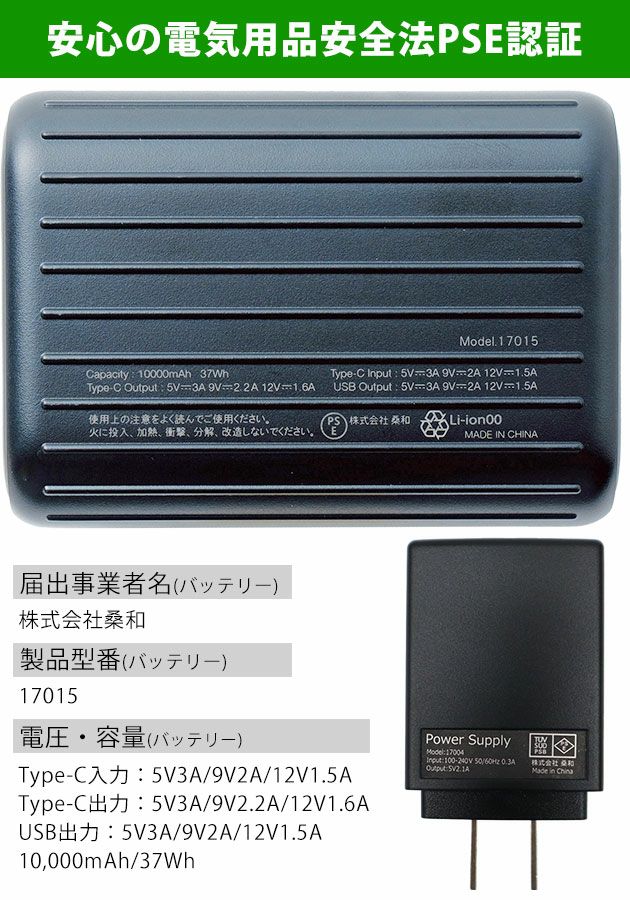 | バッテリー容量:10,000mAh/37Wh |