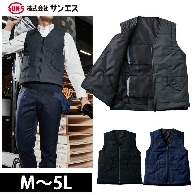 ジャケットの中に着れる!雷神服ユニット装着可能な防寒ベスト! サンエス 作業着 電熱ベスト 雷神服ウォームベスト BO32160