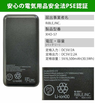 | バッテリー容量:定格容量:5V/6,500mAh(30.5Wh) |
