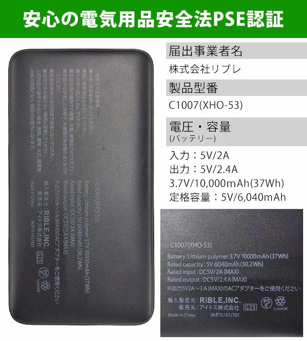 | 製品型番(バッテリー):C1007(XHO-53) |