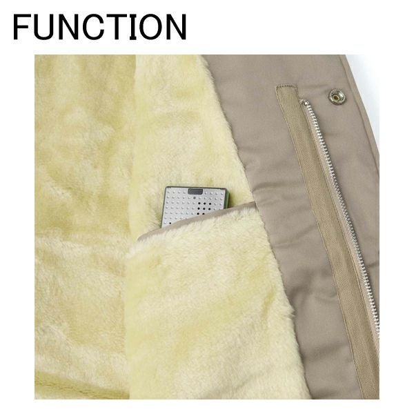 | 特徴 | 1、裏ボア 2、金属ファスナー 3、金属ボタン 4、衿ボア着脱可能 5、良質ボア使用で保温性バツグン 6、便利な内ポケット |