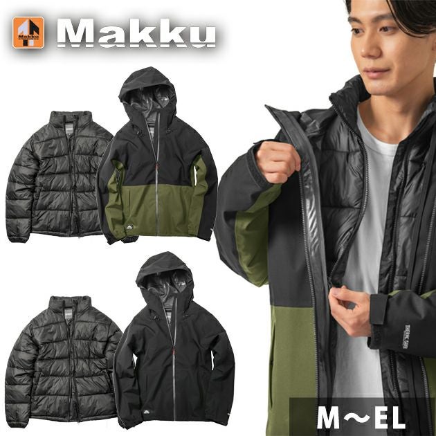 | 【特徴】 | 中綿防寒ジャケットとレインジャケットが合体! しかも防寒ジャケットとレインジャケットをセパレートできるから天候に合わせて調節ができる! 1着で様々な使い方にジョイントする3in1ジャケット登場! ◆雨の日はレインジャケットに、雪の日は防水防寒ジャケットに変身! 見た目はレインジャケットですが中に中綿防寒ジャケットを搭載! レインジャケットと防寒ジャケットはファスナーでつながっているだけなのでファスナーを外せば2着に! 春秋の雨の日はレインジャケットだけでOK。 寒い冬の日は中の防寒ジャケットだけでOK! さらに雪や雨が降る寒い冬の日は合体させて防水防寒ジャケットに! 使い方は自由自在! ◆レインジャケット部分 ・フードは上下左右の首の動きにもフィットするセーフティーフード ・フードはヘルメット対応 ・袖口調整テープ ・手差しポケット ・裾幅調節コード ・耐水圧20,000mm、透湿度20,000gの抜群な快適性 ◆中綿防寒ジャケット部分 ・胸部インナーポケット ・手差しポケット ・裾幅調節コード ・あったか中綿140g ・軽量ナイロン |