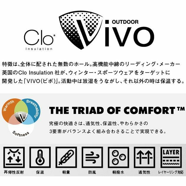 | 特徴 | スポーツウェアの技術を作業服に! 活動中はムレを外に逃がし、動かないときはしっかり保温する特殊な中綿を使用したブルゾン! ◆無数の穴があけられた中綿「VIVO(ビボ)」採用 中綿の中に穴をあけることで体温で中綿が温められ、一方で体内から出る水蒸気を穴から適度に逃がすことが可能に。 保温性と快適性を兼ね備えた中綿を採用しています。 ◆斬新なデザインのファスナーは外観だけではなく、冷気が入りにくい工夫も。 ◆軽くて薄いのでジャケットの中に着ることも可能。 ◆衿裏に暖かく肌離れのよいブロックフリース仕様 ◆大容量のフロントポケットにはリフレクターもプラス ◆裾はドローコードで調節が可能 |
