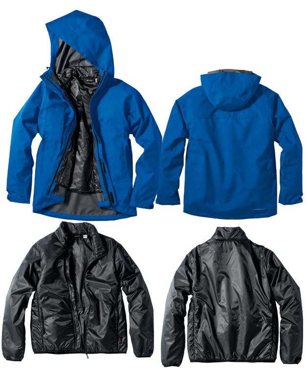 | 【特徴】 | ?インナーとアウターを組み合わせることで、1着で3通りの着こなしが可能。 保温性はもちろん撥水性、透湿性にも優れた万能防寒ジャケット。 ヘルメットの上からでもかぶれるフードも装備。 ◆表地:ポンジ 軽量でなめらかな肌触りで着心地も良く、ストレッチ性もあり、シワにもなりにくい。 ◆インナー中綿:グラフェン再生中綿 遠赤外線効果と抗菌効果を併せ持つ、保温力にすぐれた再生素材を使用した中綿 ・撥水性 ・防風性 ・グラフェン再生中綿 ・反射素材 ・ヘルメットの上から被れる大型フード ・前立ファスナー&マジックテーブ ・両脇ファスナーポケット ・フードストッパー ・左裾ドローコード ・袖マジックテープ ・背中反射プリント ・インナー裾・袖ストレッチバインダーテープ |