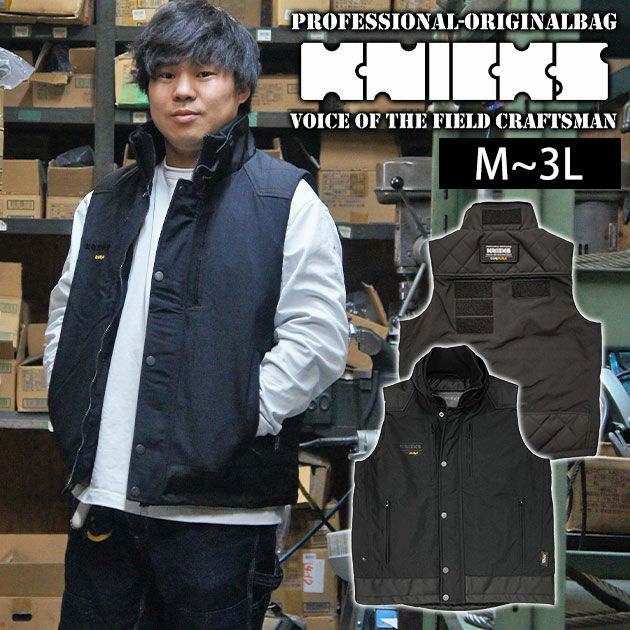 | 【特徴】 | ニックスファン集まれ! 自分の生きざまを誇れ。 職人魂を起動させる腰袋ブランド「KNICKS」から防寒着が登場。 実際に現場の職人さんに来てもらい、ネガティブな意見だけを集めて改良を重ねた最高の防寒ベスト。 抜群の保温性とコーデュラ素材の強さを最大限に生かした最強防寒着! ◆ミリタリー向けに開発された特別なコーデュラを部分的に採用! 腰袋ベルトやハーネスベルトが摩擦しやすい部分にはコーデュラバリスティックを採用。 耐引裂や耐摩耗に優れているのでハードな現場にもおすすめ。 ◆強い!表の生地には全てコーデュラを採用! 表の生地全てに抜群の耐久性を誇るコーデュラを採用。 ◆中綿には優れた発熱・保温性を発揮する「コアブリッドB」を採用! ◆内側ファスナーポケット付き ◆両胸ファスナーポケット内部にストラップ止めループ ◆肌に触れる衿部分には肌触りの良いウール混素材を採用 ◆裾アジャスター ◆こだわりを際立たせるKNICKSオリジナルワッペン付き ◆ロゴ入りガーメントバッグ付き |