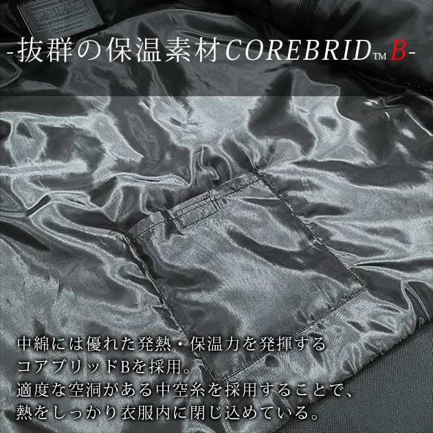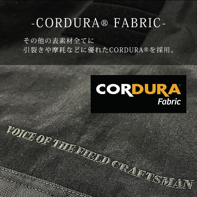 | 【素材】 | 表地:コーデュラ500D 切替部分:コーデュラバリスティック840D 中綿:コアブリッドB(制電・発熱・保温素材) 立衿:ウール混 |