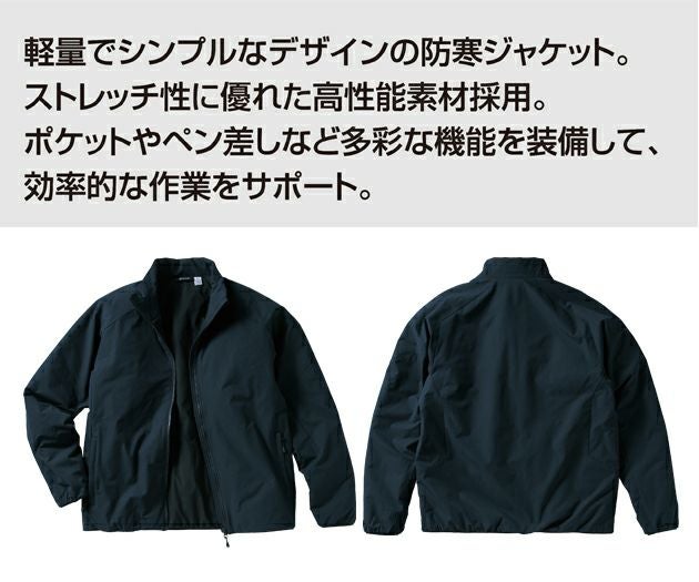 | 【特徴】 | 軽量でシンプルなデザインの防寒ジャケット。 ストレッチ性に優れた高性能素材採用。 ポケットやペン差しなど多彩な機能を装備して、効率的な作業をサポート。 ◆シンプルデザイン ◆ストレッチ ◆軽量 ◆1次撥水 ・背ネーム ・両脇ファスナーポケット ・左内ポケット ・左袖ペン差し ・袖口、裾総ゴム ・ストレッチ素材 |