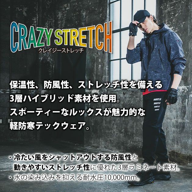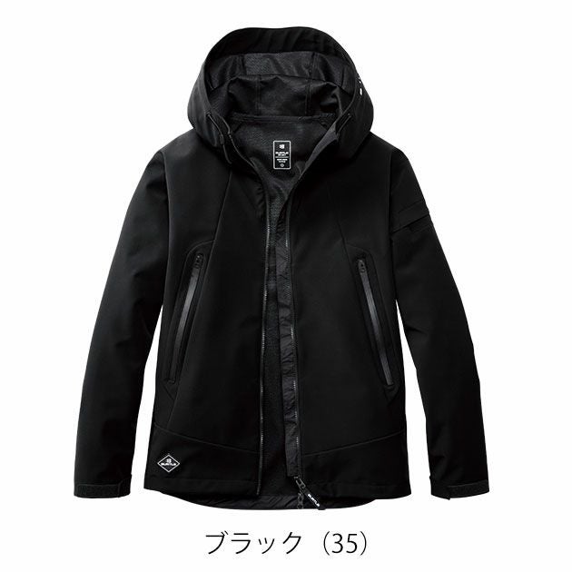 | 【素材】 | 3層構造裏メッシュボンディングストレッチ 防風ラミネート加工(耐水圧10,000mm)・強撥水加工 |