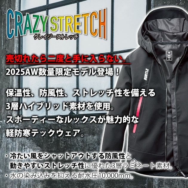 | 【素材】 | 3層構造裏メッシュボンディングストレッチ 防風ラミネート加工(耐水圧10,000mm)・強撥水加工 |