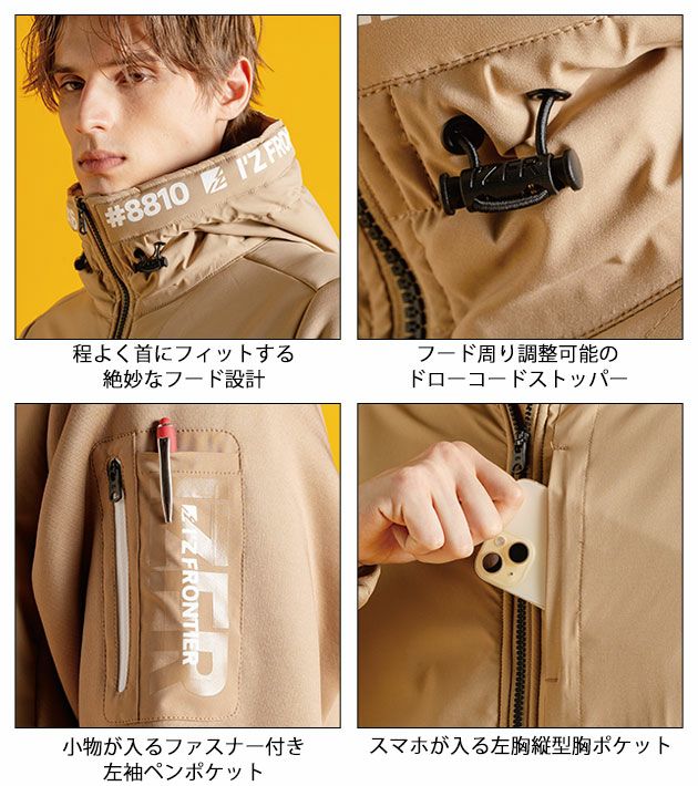 | 【特徴】 | Let's enjoy winter! 冬の街をアクティブにきめろ!様々なシーンに映える行動派ワーカーご用達のストリートアイテム鮮烈デビュー。 ◆布帛、カットソー、ボアなど、あらゆる素材をミックスし、強烈なストリートカジュアルテイストを放つ最高峰アウターアイテム。 ◆本体素材はシーンを選ばないシンプル構造のニット素材を使用。肌面は柔らかなボアフリースをボンディングし極上の着心地と保温力を発揮します。 ◆ニット素材でありながら破裂強さ864kpa、抗ピリング性能4.5級、抗スナッグ性能5級を誇る非常に優れた堅牢性を有しています。 ◆非常にボリューム感のある素材ながら、伸長率タテ約6%・ヨコ約27%伸長回復率(1時間後)タテ約99%・ヨコ約95%を誇る抜群の動き易さを実現。 ◆フードや前身上部に防風性を兼ね備えた布帛素材を使用。このハイブリット構造により機能性と高級感をアップさせます。 ◆フード外側には大胆なラバープリントを、フード内側にはさり気ないエンボス加工をそれぞれ施ブランドロゴを絶妙に表現した個性と高級感を兼ね備えたルックス。外観のみならず、フード内には中綿を使用し更なる保温効果を高めています。 ◆ロゴ入りフードアジャスターや右袖ポケット等、細部にまで拘りを追求しています。 ・程良く首にフィットする肩幅 ・絶妙なフード設計 ・フード周り調整可能のドローコードストッパー ・スマホが入る左胸縦型ポケット ・小物が入るファスナー付き左袖ペンポケット |