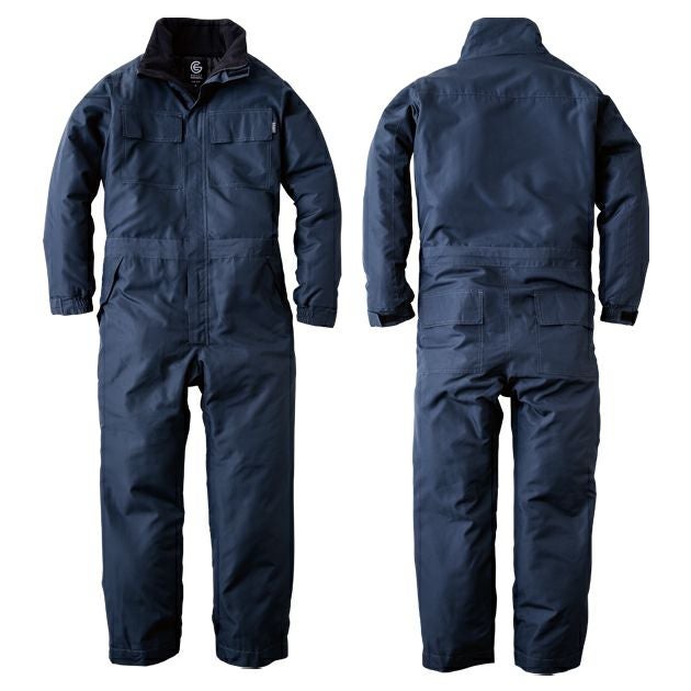 | 【特徴】 | コスパ重視の防寒ツナギ 肌寒い時の軽作業時など、ちょっとツナギを着たい方にお手ごろな中綿入りツナギです。 防風性と保温性を考えた少し高めの襟は、ヒンヤリ感をなくすよう裏地をトリコット素材に。 袖口は調整が出来るタブ付きでポケットも全部で6か所あり、収納面も十分です。 【マジックテープ】 袖口・前立てヒヨク・両胸ポケット・パンツ両前ポケット・パンツ両後ポケット 【コイルファスナー】 前立て ・衿裏トリコット ・ポケット(両胸) ・ヒップポケット(両側) ・脇ポケット(ボトム) ・袖口アジャスター ・中綿キルティング |
