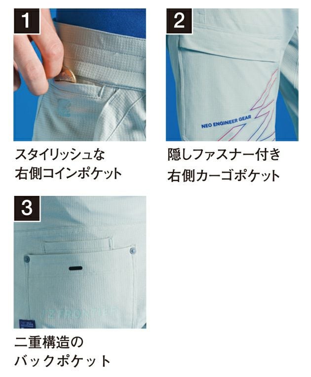 | 【特徴】 | NO BORDER! 境界など不要。ワークシーンにとどまらないその鮮烈な世界観は様々なシーンをリッチに演出。 ニーズ沸騰の人気モデルが鮮やかにアップデートし新登場。 ◆各種品質データで高い数値を叩き出した高性能モデル。 ◆ワッフル編みをアレンジした絶妙な素材構造による適度な通気性も合わせ持ちます。 ◆特殊な異形断面糸を使用。一般基準を大きく上回る吸水速乾機能による、サラっとドライなパウダータッチが魅力。 ◆伸長率タテ約30%・ヨコ約33%、仲長回復率(1時間後) タテ約95%・ヨコ約96%を誇る優れたストレッチ性能を発揮。ストレスのない快適な動き易さと安定感のあるシルエットキープを実現します。 ◆綿ライクなやさしい風合いも、破裂強度(430kPa)、抗ピリング性(5級)、抗スナッグ性 (4.5級以上)等高い強度を併せ持つ完成度の高い1着に仕上がっています。 ◆遮蔽率97.6%/UPF40を誇る優れたUVカット効果。 ◆快適な作業を実現するジョガーパンツと、やや細めのシルエットでキレイなスタイリングを実現するハーフパンツの、異なる2タイプのシルエットをラインナップ。 ◆計算しつくされた様々なデコレーションプリントが、唯一無二の存在感を発揮します。 ◆スポーツフィーリングを高めるジャケットビスロンファスナーやリッチ感を演出するプリント止水ファスナー、国産YKK社製のタックボタン等を使用し、細部にまで拘りを追求。 ・スタイリッシュな右側コインポケット ・隠しファスナー付き右側カーゴポケット ・二重構造のバックポケット |