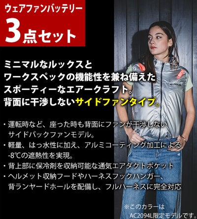 すぐ使える3点セット!背中に干渉しないサイドファンベスト! バートル BURTLE AC2094・AC10・AC10-2 空調作業服 作業着 エアークラフト ACベスト・ファンバッテリー3点セット(2026年モデル新作)