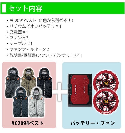 5. バートル BURTLE AC2094・AC10・AC10-2 空調作業服 作業着 エアークラフト ACベスト・ファンバッテリー3点セット(2026年モデル新作)