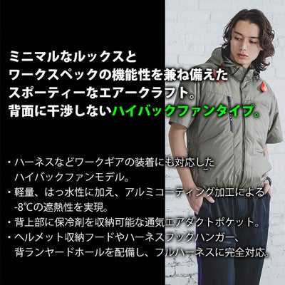 | 【特徴】 | シンプルな見た目ながらも仕事に必要なスペックをしっかり搭載! スポーティーなバートル空調作業服登場! ハーネスなどのワークギアの装着を想定したハイバックファンモデル! ◆-8℃の遮熱性!軽量、撥水性、UVカットはもちろん、アルミコーティング加工による遮熱性も搭載! ◆ヘルメット収納フードやハーネスフックハンガー、ランヤードホールなどフルハーネスに完全対応 ◆ヘルメット対応の大型フード ◆右バッテリー収納ポケット ◆ハーネスフックハンガー取り付けベルト・取り出し口 ◆左胸ペンポケット ◆袖ペンポケット ◆左内バッテリーポケット ◆ランヤード取り付け口 ◆肩部分の高い位置にあるハイバックファン ◆首の裏を空気が抜ける衿ダイレクトエアー |