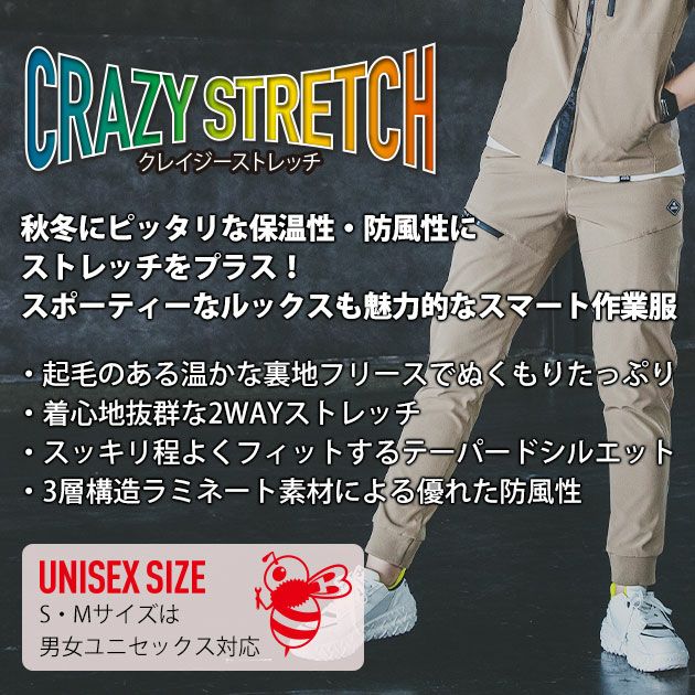 | 【特徴】 | 秋冬作業服の新しいカタチ! シンプルながらスポーティーな見た目のスマート作業着! 秋冬のワークシーンにぴったりな保温性・防風性・ストレッチ性を備える3層ハイブリッド素材を使用! ◆2WAYストレッチでアクティブに動ける! ◆スッキリ程よくフィットするテーパードシルエット ◆3層ラミネート構造による優れた防風性 ◆S・Mサイズは男女ユニセックスサイズ ◆右前・左脇ツインループ ◆右サイド出し入れしやすいラジポケ ◆右サイドカーゴポケット ◆ウエストシャーリングゴム仕様 ◆長財布・野帳・スマホが入る左ファスナーポケット ◆メッシュポケット ◆座った時に入れたものが干渉しない左右バックポケット |