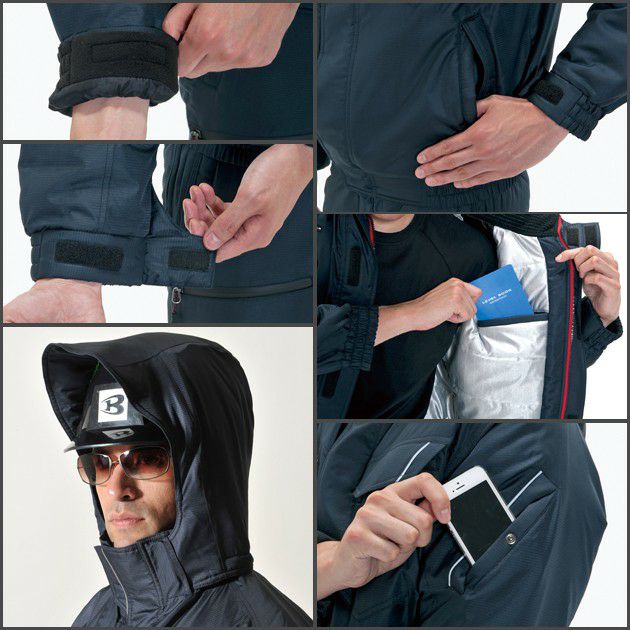 軽量設計の本格防寒ギア。W効果で暖かい全天候型保温素材 3L BURTLE バートル 防寒着作業着 防寒ブルゾン 大型フード付き 7210
