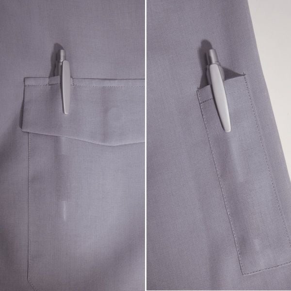 1、胸ペンさし(左) 2、袖ペンポケット(左) |