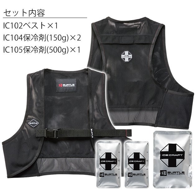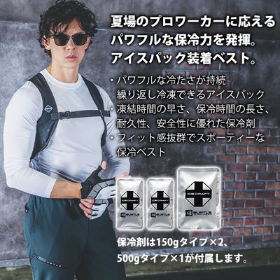 | 【特徴】 | 夏のプロワーカーの期待に応える、パワフルな保冷力! 過酷な夏に大活躍間違いなしの保冷ベスト登場! ◆表面温度5℃と0℃帯のパワフルな冷たさを持続し繰り返し冷凍可能な特殊アイスパック ◆凍結時間の早さ、保冷時間の長さ、耐久性、内容成分の安全性に優れた特殊低温保冷剤 ◆抜群のアイスパックのフィット感を提供するスポーティーなパワーストレッチベスト ◆Fサイズは男女ユニセックス対応サイズ ◆両脇アイスパックポケット ◆背中アイスパックポケット(500gタイプが入る) ◆バックルアジャスターベルト ◆セット内容:IC102ベスト×1、IC104保冷剤(150g)×2、IC105保冷剤(500g)×1 |