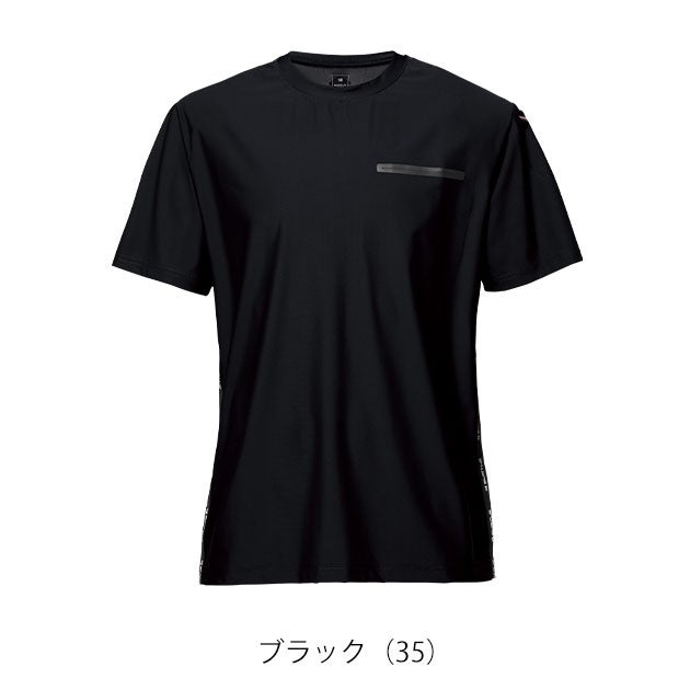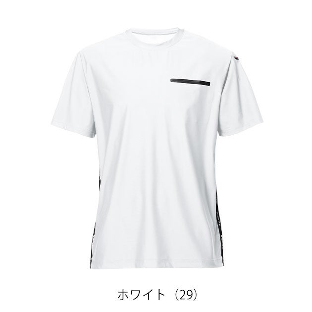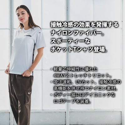 | 【特徴】 | 接触冷感の効果を発揮するナイロンファイバーのスポーティなポケットT! ◆軽量で伸縮性に優れた4WAYストレッチトリコット(伸長率40%以上) ◆吸水速乾、UVカット、接触冷感の高機能を併せ持つナイロンファイバー素材 ◆ボディの脇にアイコニックなロゴテープを装着、胸、袖にマルチポケットを配備 ・シームレスポケット ・袖マルチポケット(左) ・脇ロゴテープ ・脇消臭テープ仕様 ・バックプリント |
