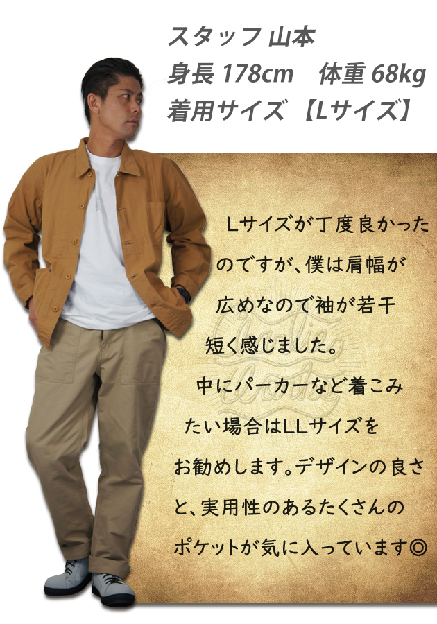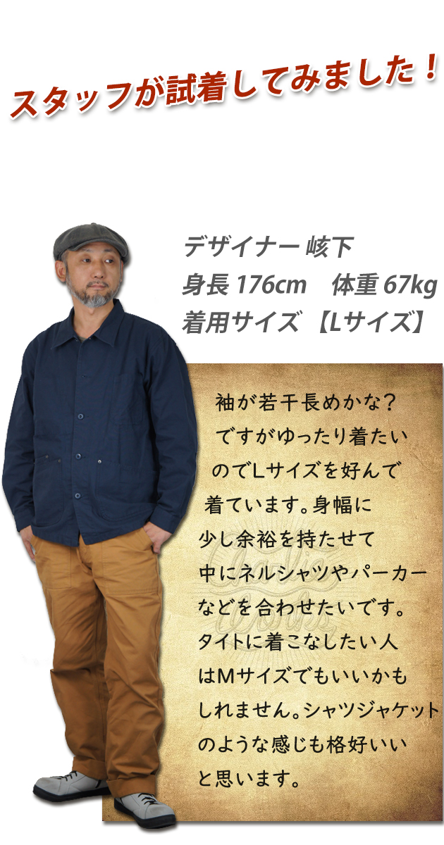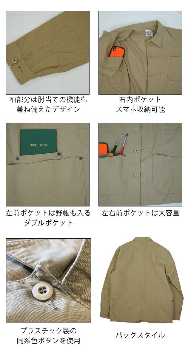 | 特徴 | カジュアルなカバーオールジャケットをワークシーンにも! ワークストリートオリジナルのジャケットが遂に登場! ◆左胸ポケットはスマホ収納可能 ◆右前ポケットは小物も入れることが可能なダブルポケット ◆右内ポケットもスマホ収納可能! ◆ひじ部分は肘当てを付けて補強 |