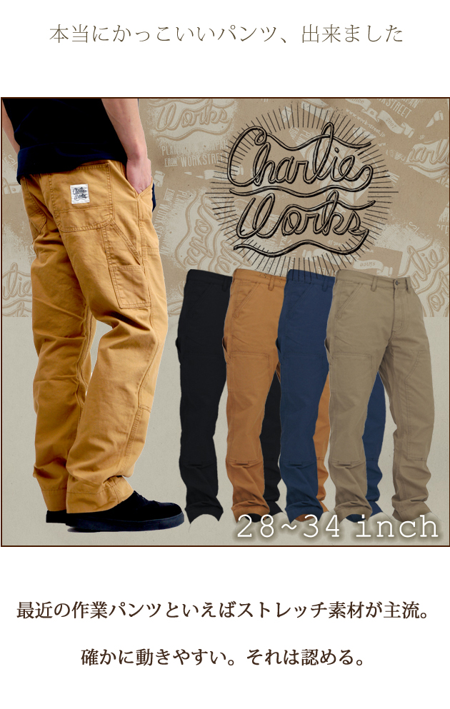 | 特徴 | ワークストリートデザイナーはげ下こだわりのぺインターパンツ!満を持して登場! ◆強い生地!綿100% 耐久性のある綿100%生地を使用!自然な風合いと肌触りが良い! ◆膝部分を補強!デザインもおしゃれ ひざ部分が二重になっているから強い! ハードワークでガンガン使える! ◆ワークパンツとしての機能性も確保! 両サイドにはツールポケットを採用し、収納性も抜群! ◆バックポケットにはチャーリーワークスオリジナルロゴ付き |