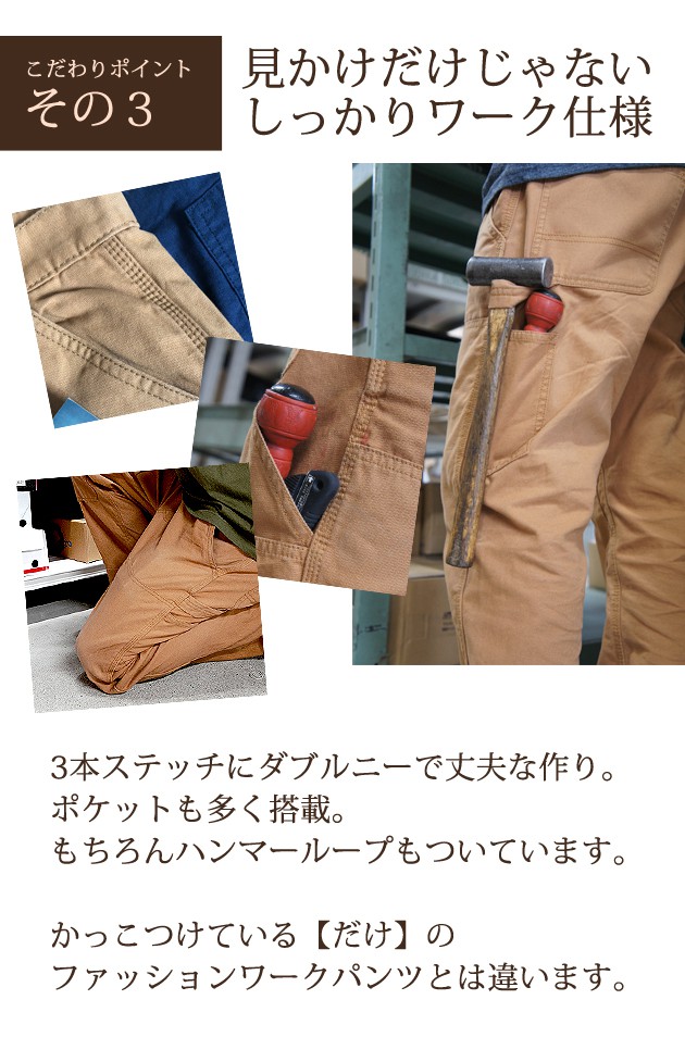 「ワークパンツ」として十二分な機能性にもこだわりました。