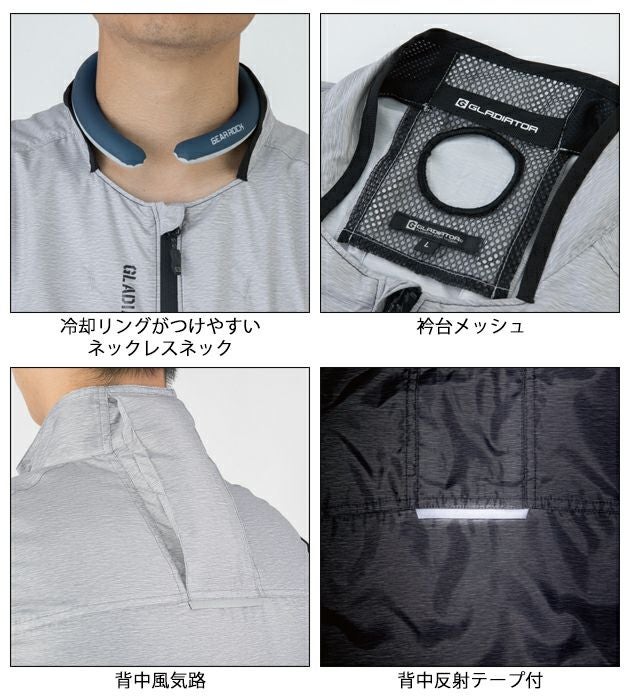 | 【特徴】 | 一番効率的に身体を冷やす衿元にペルチェデバイスを取り付け可能。 1台のモバイルバッテリーでファンとペルチェデバイスに同時給電でき、ボルトクール(R)シリーズの特許技術と使いやすさを継承した空調ウェア。 ◆ニアサイドファン 従来のファンの位置から可能な限り脇側に移動させました。 ◆紫外線による日焼けから肌をガード ◆ペルチェ裏面の可動熱をエアダクト構造衿で排気。暑さがこもらない。 ・衿台メッシュ ・背中反射テープ付 ・両脇ポケット(コードホール付き) ・背中風気路 ・ペットボトルも入る脇マルチポケット ・裾ずり上がり防止ループ ・冷却リングがつけやすいネックレスネック ・UVカット ・襟裏メッシュ ・コードストッパー ・三か所もある保冷剤ポケット ・ポケット内バッテリーコードホール ・左内側バッテリーポケット |