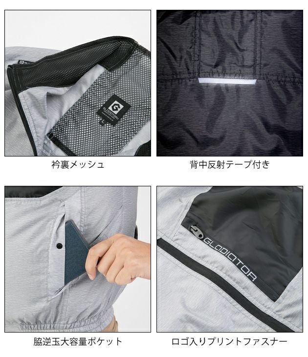 | 特徴 | シンプルなスタイルでありながら、フルハーネスに対応、草刈機用のバンド通しも備えた、現場で使えるワーカーのための機能も充実。 ◆背中ランヤード取付Dカン用 ◆草刈機肩掛けバンド取り出し口付き(右側のみ) ◆裾ずり上がり防止ループ ◆背中風気路 ◆両脇バッテリーマルチポケット ◆バッテリーコードホール ・衿裏メッシュ ・ロゴ入りプリントファスナー ・ペットボトルも入る脇マルチポケット ・背中反射テープ付き ・脇逆玉大容量ポケット ・ファンホール |