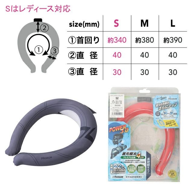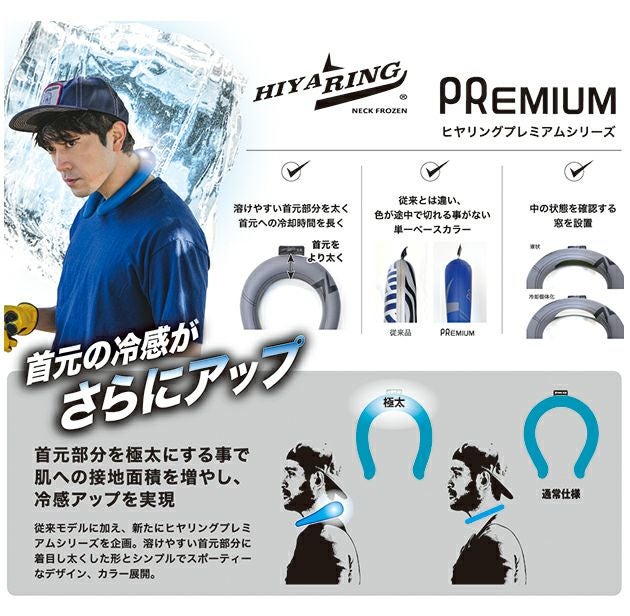 | 特徴 | 溶けやすい首元部分を太く!首元への冷却時間を長く! 長時間タイプのヒヤリングプレミアムパワーが新登場! NASAが宇宙飛行士を急激な温度変化から守るために開発された P.C.M冷却素材を使用した冷感アップリング。 22℃以下の気温や水で冷却固体化するので、どこでも手軽に何度でもクールアイテムとして使用できます。 冷却素材は安心・安全の植物性なので、万が一液漏れして肌に触れても荒れにくくなっています。 また、環境にも配慮されているので廃棄の際も安全です。 周囲の温度が上昇しても一定の温度帯を維持し熱を吸収します。 急激な温度変化による結露も起きず、冷えすぎることがないので 敏感肌の方、女性やお子様でも安心してご使用いただけます。 ・首元から涼しく、体が冷えすぎない ・従来とは違い、色が途中で切れる事がない単一ベースカラー ・中の状態を確認する窓が設置 ・繰り返し使えて経済的 ・一年中使える ・発熱時、勉強中、デスクワーク、スポーツのクールダウンなど使用場面は多岐にわたります ・Sサイズはレディース、キッズ対応 ◆ご使用時間目安 約3~4時間(外気温25~35度の場合) ※時間は目安です、ご使用環境や気温、製品の液体温度により異なります。 <冷却時間> ・氷水:約40分 ・冷凍庫:約90分 【ご使用方法】 ・肌にしっかりと接触していた方が冷感を感じやすくなりますが、締め付けが強すぎると感じる場合は冷却固体を軽く押し潰したり、左右に広げてからご使用いただくと和らぎます。 ・ヒヤリングが完全に溶けていないのに冷たさを感じなくなった場合は、固形と液体を混ぜ合わせるように振っていただくことで冷却力が戻り、再度ご使用いただくことができます。 ・お出かけ時には飲み物と一緒にクーラーボックスに、車移動時にはカーエアコンでも冷却していただけます。 |