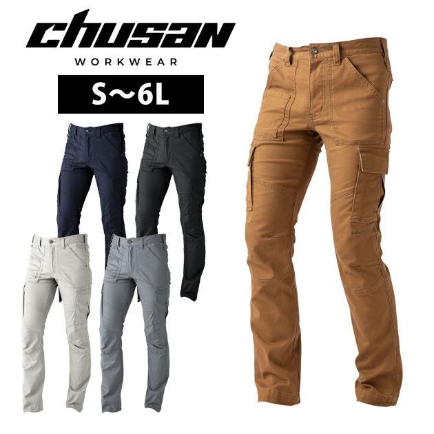 上品で凸凹感ある洗練された表情の生地の120%ストレッチ S~4L 中国産業 秋冬作業服 作業着 ドビースリムストレッチ・カーゴ 8056