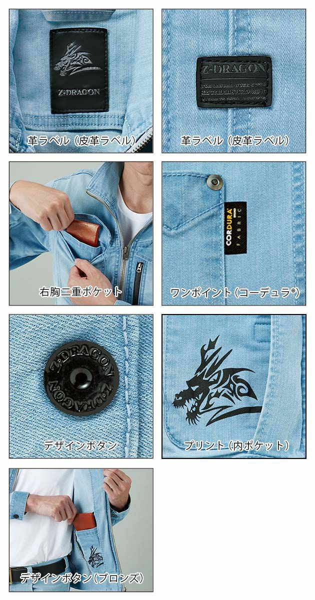| 特徴 | 強度と耐久性に優れたコーデュラストレッチデニム素材 デザイン性と機能性を併せ持つハイブリッドモデルの新シリーズ ◆CORDURA DENIM生地使用 ・高強度ナイロン66と混紡した織物 ・オーセンティックなデニムの見た目と手触り ・ミリタリーユニフォームから開発された技術 ・コットン100%のデニムと比べて最低4倍以上の着用耐久性 ◆ストレッチ ◆接触冷感 ◆野帳対応 ・革ラベル(合成皮革) ・右胸二重ポケット ・ワンポイント(コーデュラ) ・デザインボタン ・プリント(内ポケット) ・内ポケット |