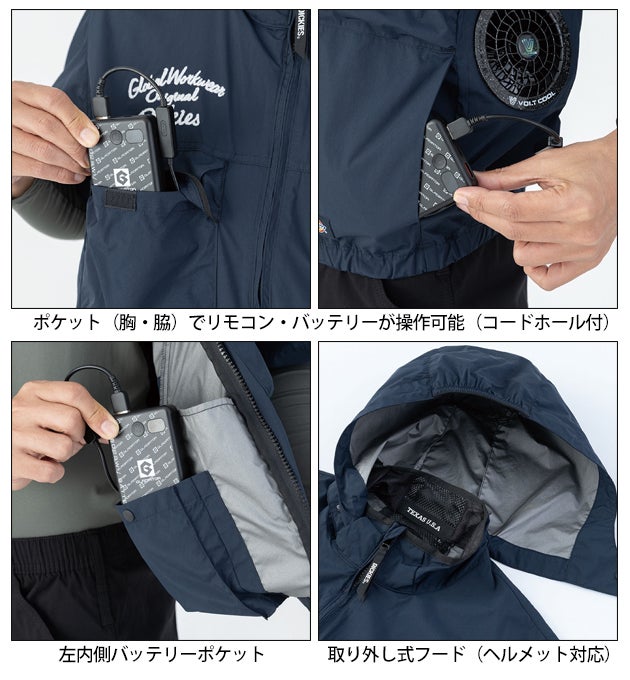 | 【特徴】 | ◆日傘遮熱(R) 裏アルミコーティングの「日傘遮熱(R)」でマイナス11℃ ◆サイドファン ファンが背中に干渉し辛く、着座時のストレスを軽減 ◆ペルチェネックホルダー 首元にペルチェクーラーユニット(GP-854)装着が可能(ペルチェなしで空調ウェアのみの使用も可能) ◆衿ワイヤー入り 形状記憶ワイヤー入りで、風気路をつぶさず首元に風を効率的に送ることが可能 ◆ヘルメット対応フード(着脱可) ヘルメットをかぶったままでも使用でき、簡単に取り外しが可能 ◆オリジナルチェーン刺繍 ミニマルなデザインに映えるクラシックな印象のチェーン刺繍 ・衿裏メッシュ ・内側全面アルミコーティング ・コードストッパー(マジックテープ留め) ・左内側バッテリーポケット ・取り外し式フード(ヘルメット対応) ・ペルチェネックホルダー ・オリジナルチェーン刺繍(右胸) ・ポケット(胸・脇)でリモコン・バッテリーが操作可能(コードホール付) |
