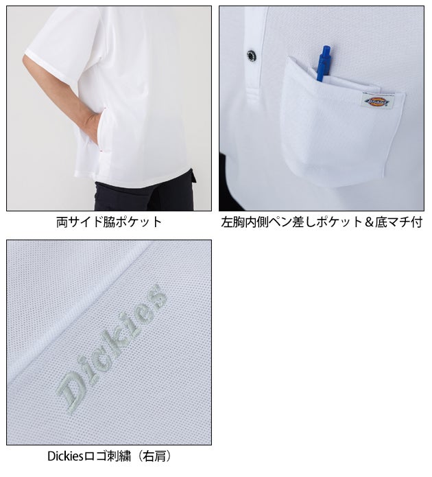 | 【特徴】 | タフなのに涼しい!耐久性と快適性を両立した着回し力の高い一着 丈夫で耐久性が高い7オンス相当の厚手生地。洗濯を繰り返してもヨレにくい。 UVカット・接触冷感・高通気で夏に頼もしい一着。 ◆リラックスフィット:程よくゆとりのあるリラックスフィットシルエット ◆便利なポケット:左胸の内側ペン差し&底マチ付ポケットや両脇ポケット、左袖のペン差しなどワークに対応した仕様 ◆UVカット:紫外線遮蔽率99%のUVカット素材で日焼けから肌をガード ◆接触冷感:熱伝導性の高い繊維を使用して肌のひんやり感を実現した素材 ◆消臭テープ:消臭テープで不快な汗臭を軽減 ・Dickiesロゴ刺繍(右肩) ・左胸内側ペン差しポケット&底マチ付 ・両サイド脇ポケット |