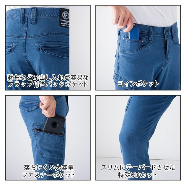 「極限」まで進化したストレッチ感!体感すべきデニムカーゴ! 115 EVENRIVER イーブンリバー 作業着 春夏作業服 エクストリームストレッチデニムカーゴ ERX402