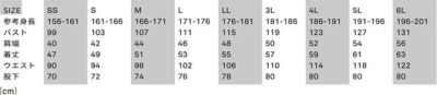 | サイズ | SS・S・M・L・LL・3L・4L・5L・6L |