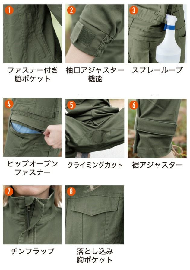 5. GRACE ENGINEER`S グレイスエンジニアーズ 作業着 春夏作業服 ヒップオープン・ストレッチレディースツナギ GE-200