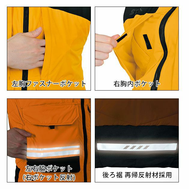 ◆左右脇ポケット(右ポケット反射テープ採用)