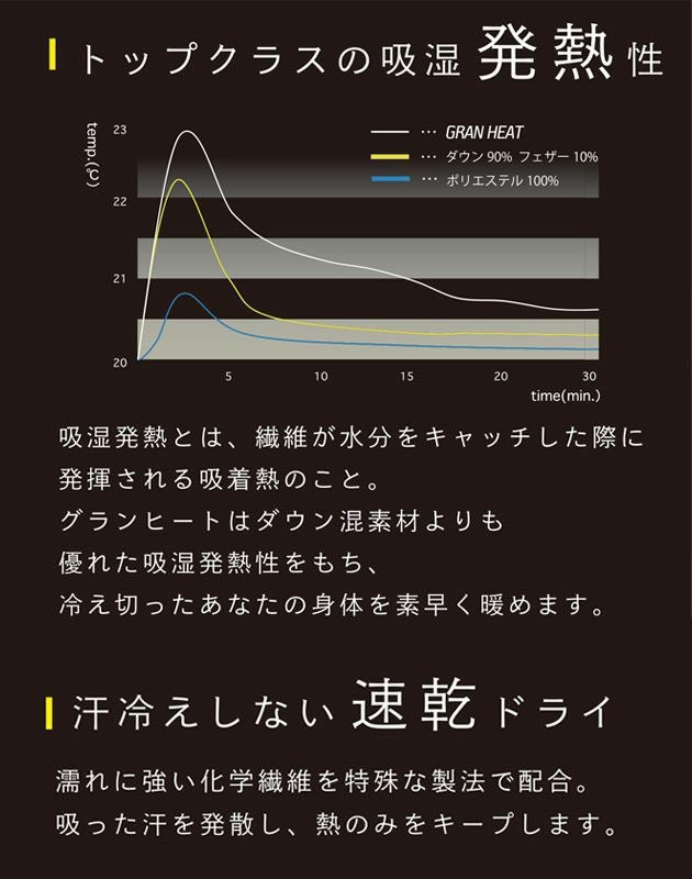 | 特徴 | 体から発せられる汗を利用してダウンよりも早く長く暖かさを生み出す吸湿発熱綿「グランヒート」を採用! ジャケットの中に着るインナーベストとしても、アウターとして羽織ってもOKな電熱対応ベスト! ◆トップクラスの発熱性!「グランヒート」 繊維が水分をキャッチした際に発揮する吸着熱を利用した繊維を採用! グランヒートははダウン素材よりも優れた吸湿発熱性を持ち、冷え切ったあなたの体を素早く温めます! ◆汗冷えしない速乾仕様 ◆9割越えの高消臭機能! ◆3Dエンボスプリント ◆HUMMERネーム ◆左胸ポケット ◆内側ケーブルコードホール ◆ロゴプリント ◆雷神服発熱ユニット対応 |